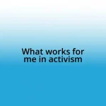 Key takeaways: Defining personal activism goals connects deeply with individual values, enhancing motivation and impact. Understanding community needs through direct engagement and feedback informs effective activism. Storytelling and tailored communication…